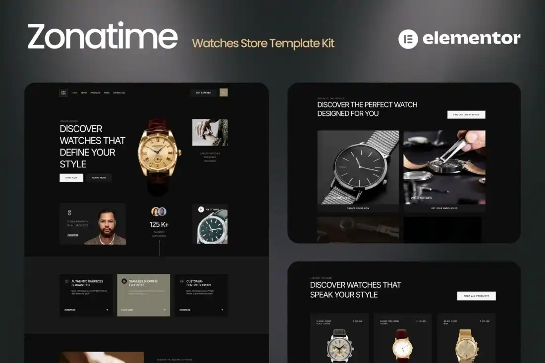 Zonatime – Dark Theme Watch Store Elementor Template Kit